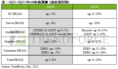2021年03月17日 | 第二季度DRAM价格预测:服务器DRAM价格或季增近20%