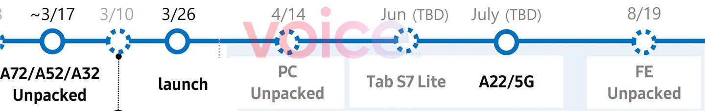 爆料者 @Evan Blass 今日放出了一张三星 2021 年产品路线图,继昨日发布新款 A 系列中端机型后有望在月底发布另一款产品,目前尚未得知是何产品,或为新款家用电子产品。