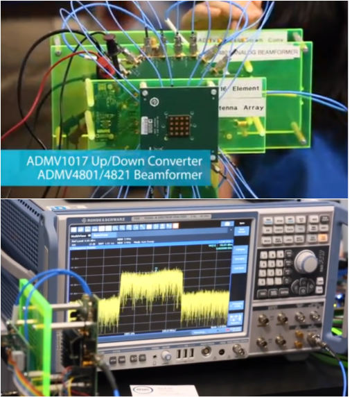 例如,ADI正在生产集成5G系统的几个关键部件,如ADMV4801射频收发器和波束形成器。波束形成是5G一个重要组成部分,5G服务器和设备可以将发射目标定位为更强大的定向通信波束。该部分工作在24GHz到29.5GHz范围内,支持16个发射机通道和16个接收器通道。匹配的50 Ω输入和输出阻抗使其易于与标准天线和射频组件接口。它保留了用于波束定位的存储器,这对重建固定的点对点位置的通信很有用。