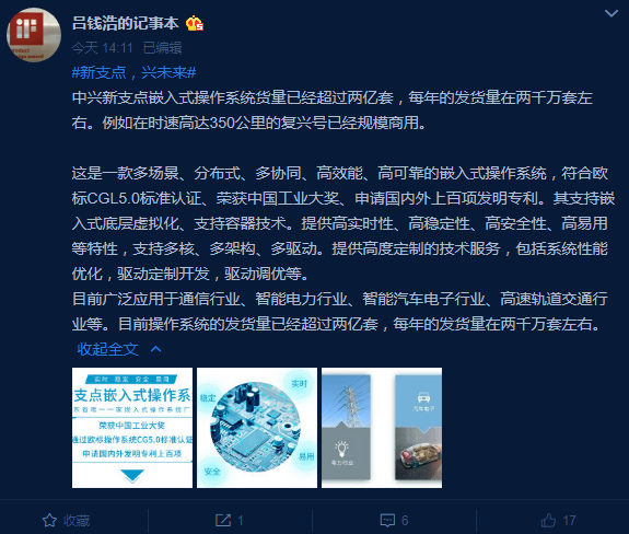 在OS系统领域,国产厂商终于有所突破——中兴高管吕钱浩表示中兴新支点嵌入式操作系统出货量已经超过两亿套。