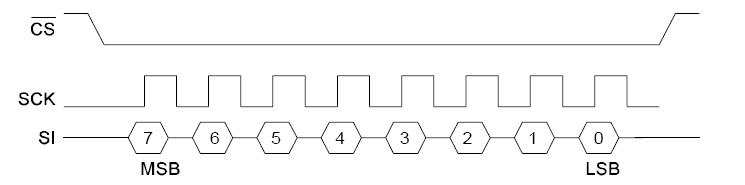 单片机向AT25040N写入数据之前,首先要向AT25040N写入“Write Enable”命令,此命令格式如下: