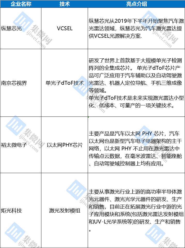 南京芯视界成立于2018年,拥有先进的光电转换器件设计和单光子检测成像技术,主营固态激光雷达芯片、大数据中心超高速光电互联芯片及系统解决方案。据悉,其研发了基于大规模单光子检测阵列的全集成芯片,该芯片在CMOS工艺上实现了高灵敏度、高分辨率单光子检测阵列,集成了自主研发的超高精度测距电路和抗干扰数字算法,基于该芯片的激光雷达系统可实现精确测距,功耗成本低、灵敏度高、可靠性高。2019年,南京芯视界与北汽新能源在硅谷成立自动驾驶联合实验室,依托硅谷联合实验室平台,双方技术共享,共同研发以固态激光雷达为核心的下一代多传感器融合自动驾驶系统。