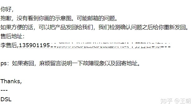 联系售后邮箱直接让我邮寄回去检测。之后我还直接给他们技术人员打电话。对方也表示这个事情比较奇怪,让我更换不同的线,实验之后也没有效果。