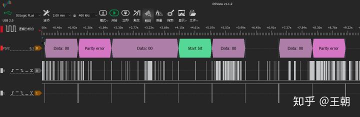 但是很快就跑偏了,下面 Channel 0 的数据是错误的,应该的大部分时间为高,部分时间为低,但是不知道为什么出现大部分时间为低,少数时候为高的情况。这种情况下数据的解析更是“太监开会---无稽之谈”。
