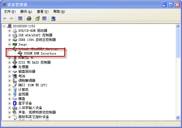 USBDM是飞思卡尔16位单片机的少些代码及调试程序的工具。飞思卡尔16位单片机可以支持多种调试工具,典型的有官方的调试器和开源的USBDM调试器,由于开源的调试器版本比较多,不同版本驱动的安装方法也不相同,所以USBDM驱动的安装需要参考厂家的使用说明进行。安装好驱动之后,可以在设备管理其中查看到USBDM对应的设备。如下图所示。
