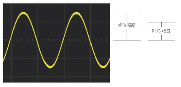 图 1. 正弦波的峰值幅度和 RMS 幅度