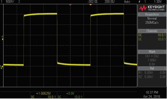 图 10. 在示波器上显示的方波的电压-时间图
