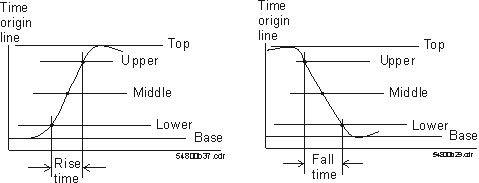 上升时间 - 这项测量旨在计算信号从低电压上升到高电压所花的时间。通常是计算波形从峰峰值电压的 10% 变到 90% 所用的时间。上升时间是上限阈值上的时间减去您正在测量的边缘的下阈值上的时间。下降时间相似,即下阈值上的时间减去您正在测量的边缘的上限阈值上的时间。
