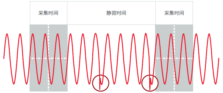 什么叫“静寂时间”?每台示波器都有一个固有特性,叫做“静寂时间”或“死区时间”。这是示波器两次采集间隔的时间,也可以理解为示波器处理上一次采集到的波形所需的时间。在这段静寂时间内,示波器会错过所发生的一切信号活动,如图 1 所示。因此,对于您来说,静寂时间越短越好。