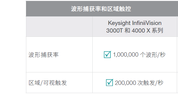 是德科技示波器的区域触发功能是一种“傻瓜型”系统,可以快速隔离设计中的疑难信号。而波形捕获率较低的示波器没有区域触发功能。