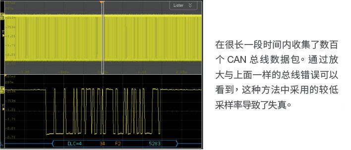 图 7. 使用低采样率(下)会导致严重失真 ;使用最高的采样率(上)则可以确保测量精度