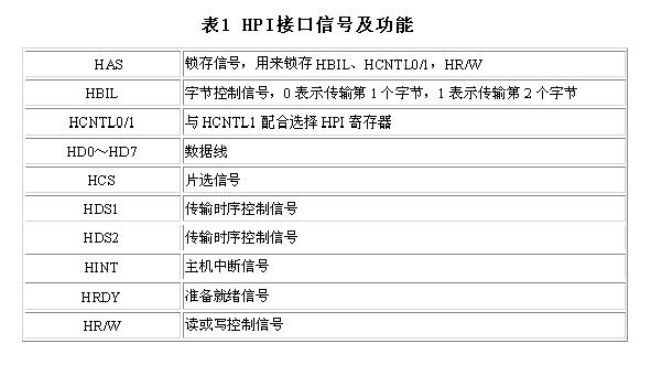 HPI8总共有18根信号线。其中数据线8根(HD0~HD7),其余10根都是控制线,如表1所列