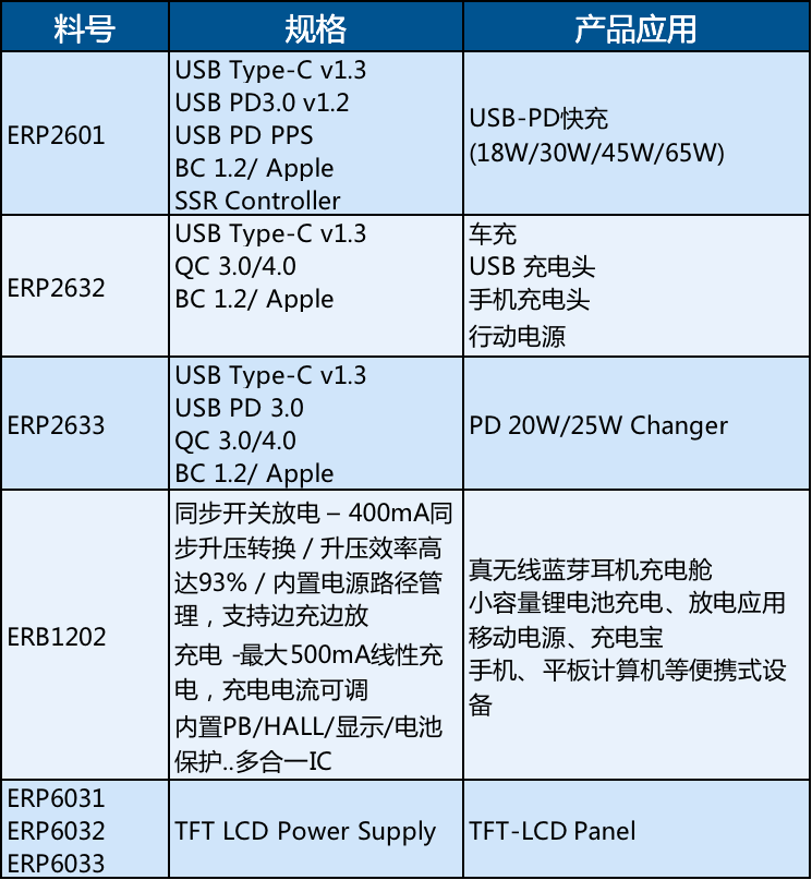 据了解,禹创半导体ERP2601可应用于智能手机/平板/笔电的USB Type-C PD适配器以及电子设备的USB Type-C PD 18~65W 充电器。目前ERP2601已量产出货, 并已进入多家厂商供应链。该产品被证明可与现一线ACDC控制器完美配合, 提供精简, 高效的快充电源设计。