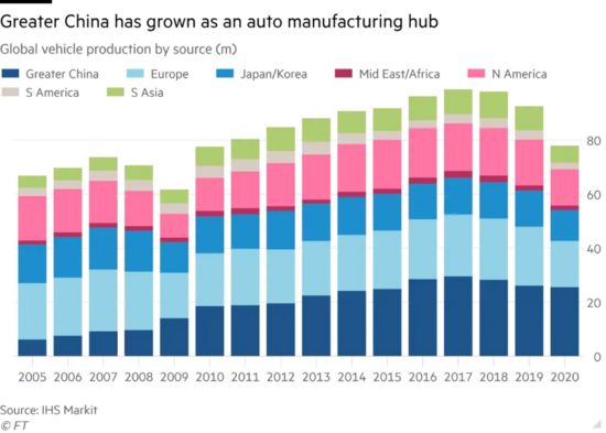 值得一提的是,不仅是芯片制造业,中国还是全球最大的汽车市场,同时中国也向韩国和日本的OEM提供车用零部件。根据IHS Markit的数据,在2015年至2019年期间,中国对日本的零部件出口增长17%,至32亿美元。而随着汽车行业不断向电动化方向发展,东亚可能会从进一步受益。