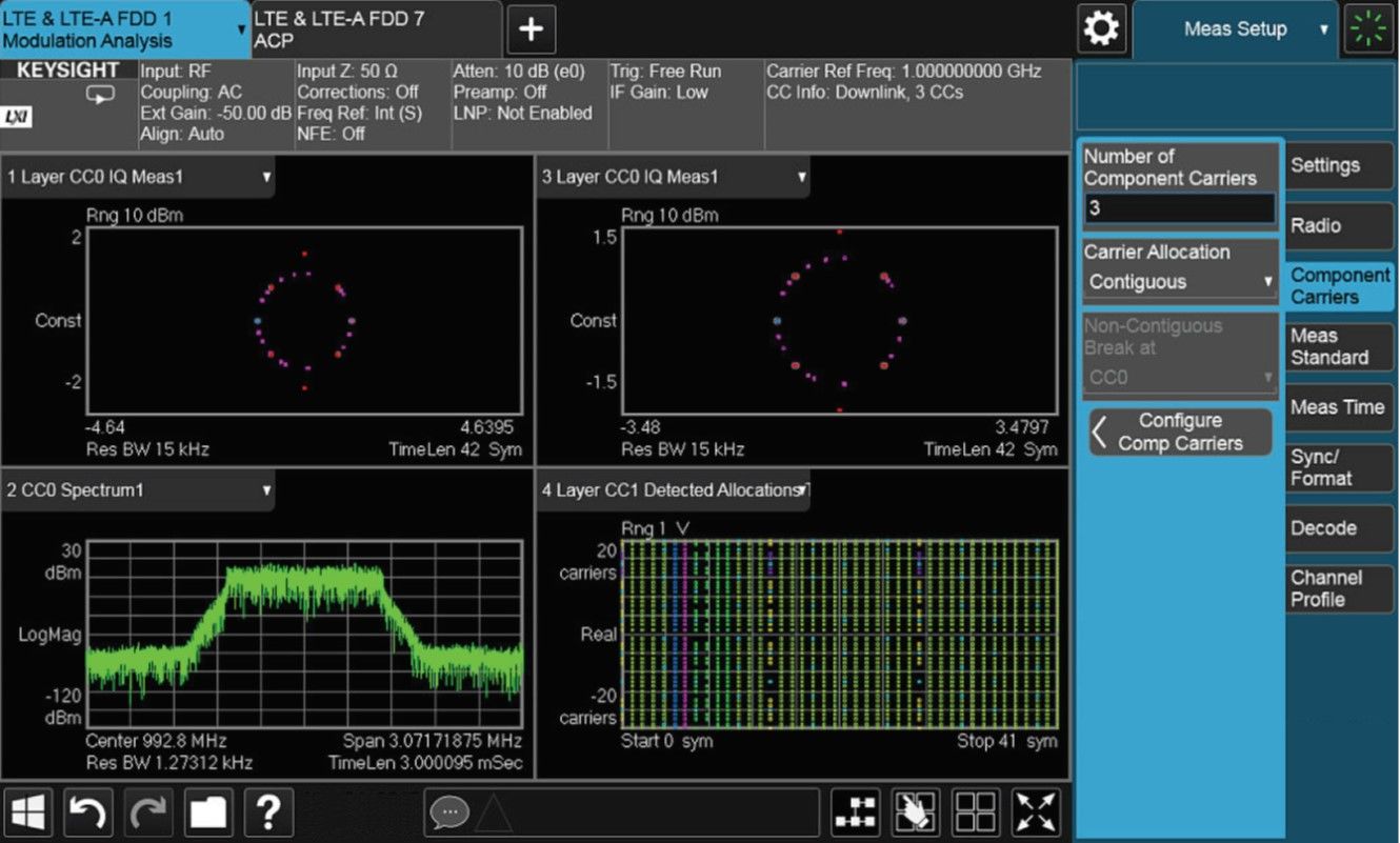 针对高级数字调制方案中的信道功率测量,如果进行手动配置将会十分复杂,解读起来也很繁杂。例如,在 LTE-Advanced 标准中,针对非连续载波聚合的信号,还会进行累积 ACLR (CACLR)测量。