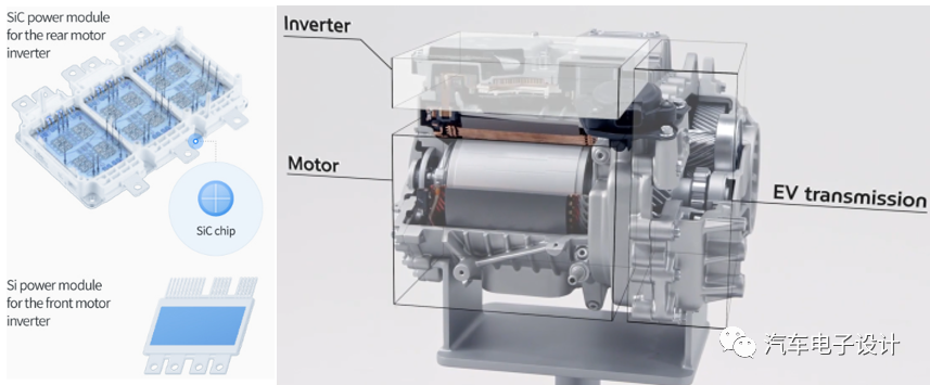 现代的E-GMP系统中,前驱还是采用传统的模块,在后轮电机系统的逆变器电源模块中,采用了800V碳化硅(SiC)模块,通过新兴模块的导入系统效率可提升2~3%,续航里程可延长5%左右。这个供应商一直不知道是谁,最主要是不清楚现代是否有能力把这个平台快速推起来的。 从它的供应商角度来看,Vitesco 是大陆Continental AG分拆出来的动力总成部门,在整个业务版图里面,电动汽车业务是一笔小生意。
