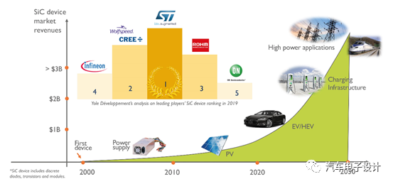 根据Yole的评估,主要的SiC器件的提供商包括ST、Cree、罗姆、英飞凌和安森美。ST是基于特斯拉大量使用400V的分立器件,而这次现代起亚的上量,也会拉开800V SiC器件的使用,