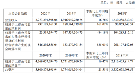 3月30日晚间,中微公司发布公告,中微公司2020年度实现总营收22.73亿元,同比增长16.76%,归属于上市公司股东的净利润4.92亿元,同比增长161.02%。2020年度不分配利润,资本公积不转增。