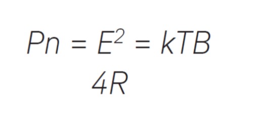 分析仪接收机链中的低电平噪声是由电阻电子的热骚动引起的热噪声造成的。因此,它与带宽成正比。热噪声电压的均方值由下式给出: