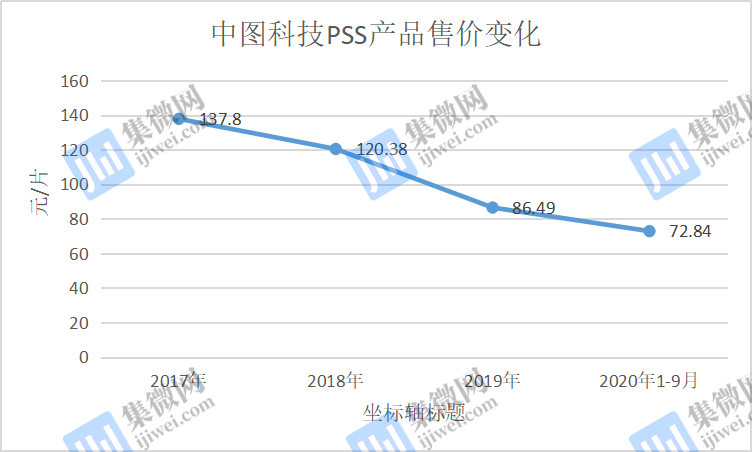 值得注意的是,近四年来PSS产品销售价格呈现连年下滑趋势。从2017年的137.8元/片,下降至2018年的120.38元/片,同比下降12.64%;到2019年,该产品价格继续下降至86.49元/片,下降幅度达到28.15%;到2020年1-9月再进一步下降至72.84元/片,同比下降15.78%。相较于2017年,其2020年1-9月PSS产品价格同比下降47.14%,近乎腰斩。