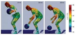 以篮球为例测量:258毫秒后,在篮球上可以看见球员的手印,是一种热标记