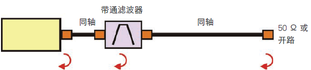 图 9. 系统包括的两个同轴电缆与带通滤波器互联并端接开路或 50 Ω 负载时的测试配置