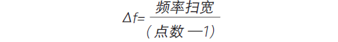 使用 VNA 测量频域中器件或系统的 S 参S 参数时,测得数据跨越了用户选择的频率范围(扫宽),并在这个扫宽上以离散点存储。数据点之间的频率间距 Δf,直接与频率扫宽成正比,与总测量点数成反比,如下面的公式所示。