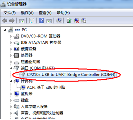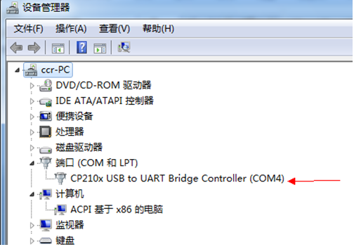 我这里设备管理器中显示的端口号为COM4,用户的端口号可以根据自己的实际端口值进行选择