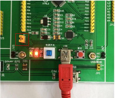 1) 短接核心板的J1跳线