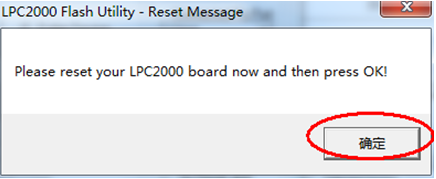 出现复位提示框后,按下核心板上的复位键,然后点确定