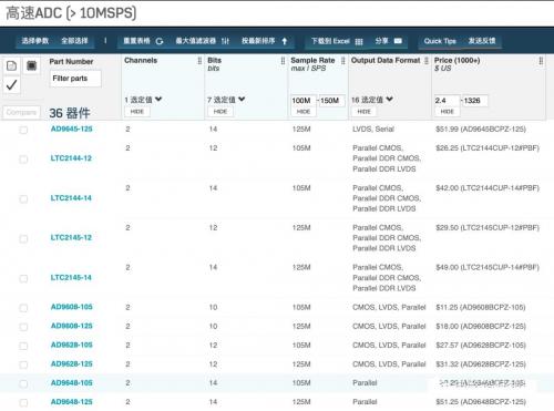 ADI公司的高速ADC,可以通过参数过滤选用最适合自己的器件