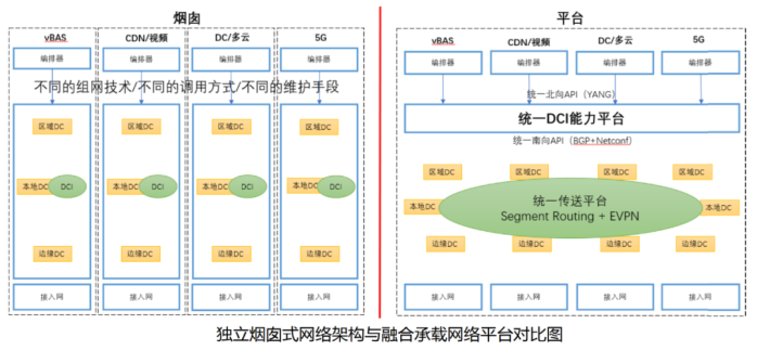 新型城域网架构,将打破独立 烟囱式 的网络架构,建设融合承载网络平台。