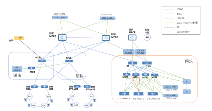 深圳智能城域网的试点采用了独立组网与混合组网的两种组网模式,上图中除标注的中兴设备外均为思科设备。