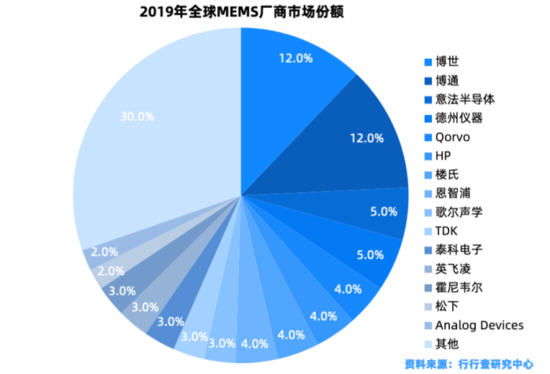 全球MEMS传感器市场的两大主要龙头企业是博世与博通集团,二者均占据了约12%的市场份额。