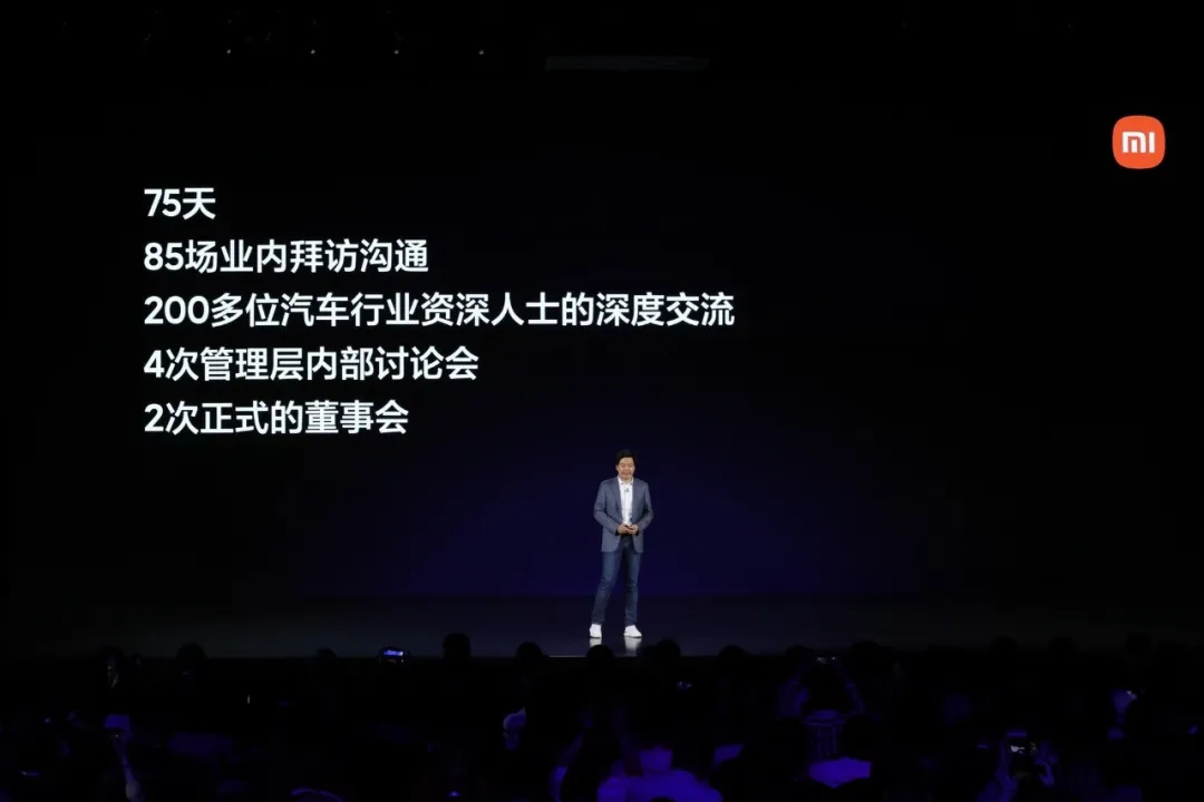 雷军分享了小米给造车做调研的经历。在过去的75天里,小米管理层经历了85场业内拜访沟通、200多位汽车行业资深人士的深度交流,四次管理层内部讨论会,两次正式的董事会,进行了详尽的调研与论证,才做出了这个决定。从中可以看出雷军的纠结和犹豫,而最终说服自己造车,雷军在发布会上总结为以下几大基石:小米有钱,亏得起;小米有人,有成熟的技术人员,也有大量米粉;小米有全球最好的生态。