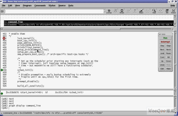 [root@newhost misc-modules]# ddd --debugger ppc_83xx-gdb –gdb /home/shyi/workspace/pro50_mpc8349_kernel/vmlinux