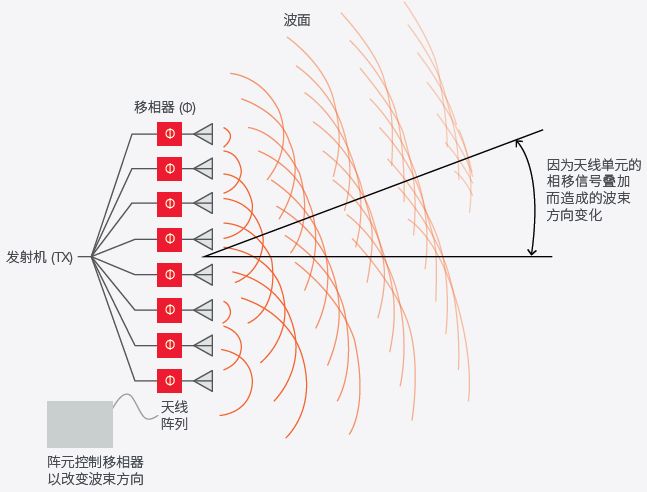 无线运营商开始开发和建设 5G 基础设施,他们希望采用更小、更密集的小区来实现 5G 速度。这些小区借助 MIMO 和波束赋形(图 8 和图 9)等技术,将数据无缝推送给客户,不会造成中断。未来,信道密度可能会达到 64 个信道。为了测量这些类型的系统,测试设备必须具有时间精确同步的多通道功能,如果只有单个通道,则必须使用复杂的测试方案。