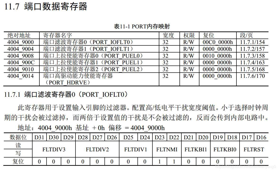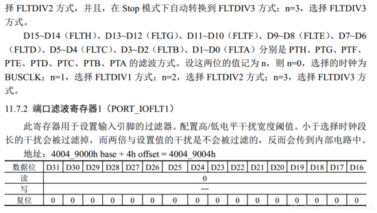 下面是端口控制寄存器介绍,主要是端口滤波寄存器,上拉使能寄存器和高驱动能力使能寄存器