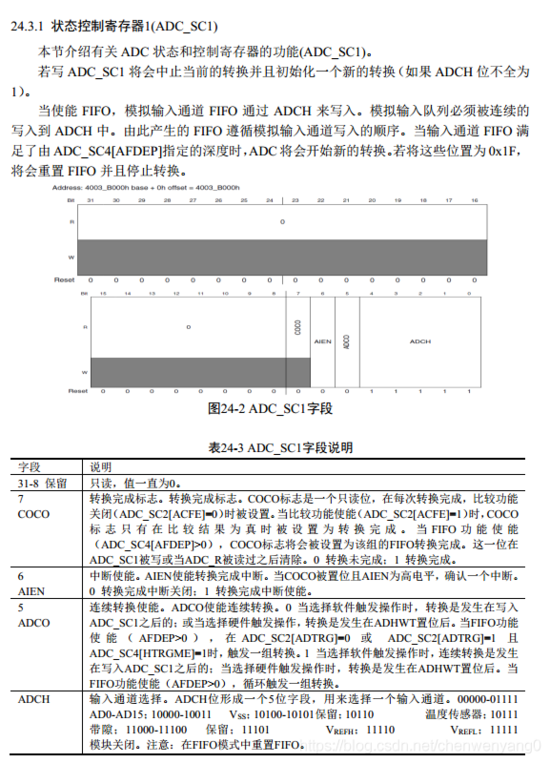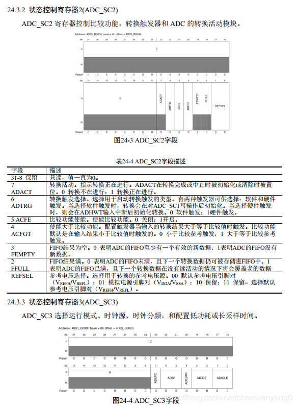 3.配置ADC_SC3寄存器的总线时钟,时钟分频,并根据采样精度定ADC_SC3_MODE位