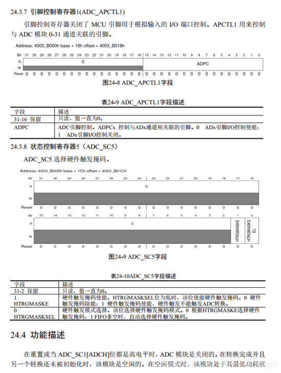 2.开启ADC_APCTL1引脚控制寄存器相应引脚的AD功能(即关闭这些引脚的IO功能)