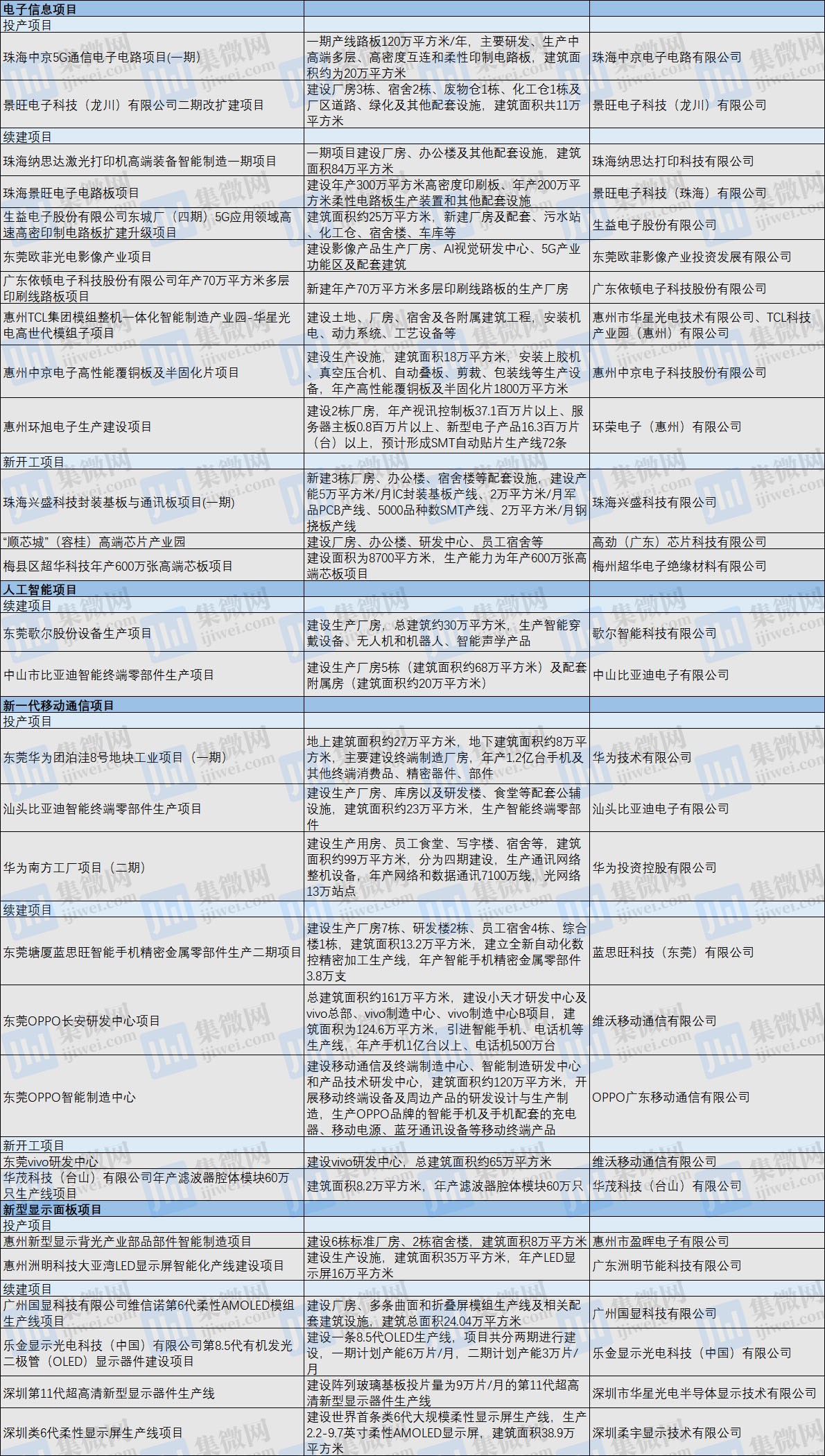 广东省2021年重点建设项目计划中,包括多个电子信息、人工智能、新型显示面板类项目。