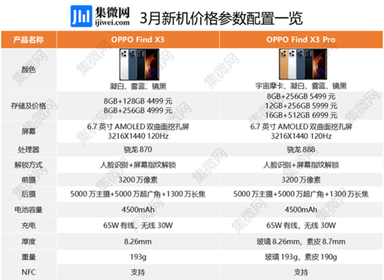 OPPO Find X3系列硬件配置都是旗舰级的,设计上有算是大胆创新,全系2K屏,电池容量和机身尺寸重量的平衡做的很不错,高刷和2K同时开也不担心续航问题,高配版和低配版差距并不大,素皮的手感更好。