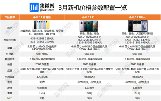 小米11青春版做的非常轻薄,应该是现在最轻薄的5G手机了,硬件配置属于中端机中不错的,适合喜欢轻薄外观的用户。小米11 Pro硬件配置很不错,电池也很大,但是手机重量也上去了,不过今年的旗舰手机大多支持2K+120Hz,要兼顾续航和流畅体验,机身重量很多在200g左右。小米11 Ultra作为超大杯,堆料很足,摄像头模组还加入了一块小屏幕,设计很奇特,影像实力也不错,就是有些重。