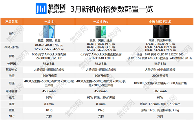 3月份新机扎堆发布,从入门级到顶级旗舰都有,游戏手机品牌也纷纷推出新品,小米的折叠屏手机也上市了,哪些新机值得入手呢?我们先来看看参数配置。