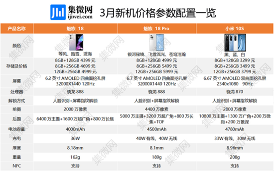 魅族精简了产品线后,预计以后每年只推两款手机,这次的魅族18系列打磨一年还是很有诚意的,放弃广告收入,还用户一个纯净的系统。魅族18堪称满血小屏旗舰,堆料不错,机身重量控制的非常好,适合想要旗舰性能又喜欢轻薄手感的用户。魅族18 Pro前置用上了4400像素自拍镜头,无线充电也没有缺席,4500mAh电池更有安全感。小米10S在去年小米10的基础上换了芯片,调整了一些配置,加上了无线充电,性价比很高。