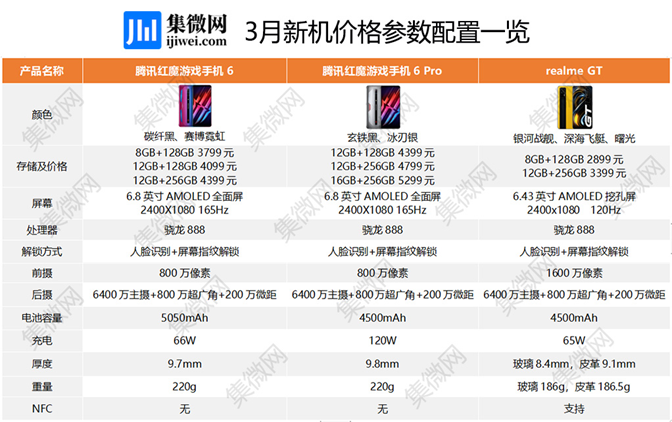 红魔游戏手机的设计一直是很出色的,外观很有个性,之前将风扇加入手机进行散热,红魔6 Pro又将手机后壳加入金属辅助散热,应该是现在手机中散热做的最好的,能充分发挥芯片性能,缺点是摄像头配置有些低,没有NFC。realme GT也是性价比机型,应该是目前最便宜的骁龙888机型,硬件配置不差,还有手感更好的素皮版。