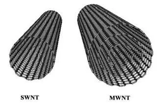 图中左侧为单壁碳纳米管,右侧为多壁碳纳米管