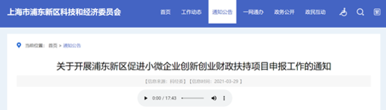 3月29日,上海市浦东新区科技和经济委员会发布《关于开展浦东新区促进小微企业创新创业财政扶持项目申报工作的通知》(以下简称《通知》)。