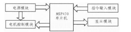 所选用的电动机为普通的直流电机,在MSP430单片机的控制下,可接一个电机驱动芯片或者通过其他的一些原件可使电机转动。本系统为了设计简单,采用其他方式代替了电路驱动芯片。