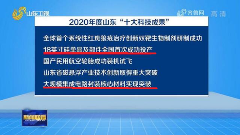 “18英寸硅单晶及部件全国首次成功投产”与“大规模集成电路封装核心材料实现突破”入选2020年度山东“十大科技成果”。